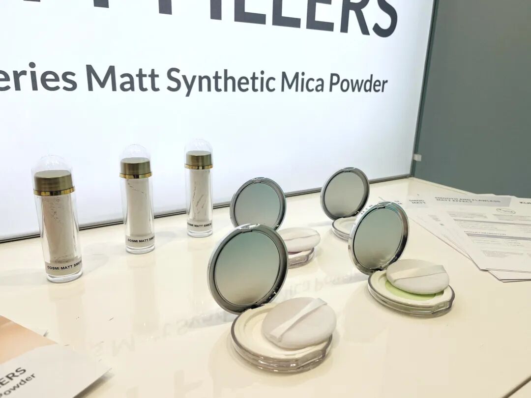 坤彩科技此次在巴黎重点展出了 “柔纱系列”哑光合成云母粉。该产品不仅拥有100%天然来源指数(NOI=1),更在妆效上实现了“柔焦”突破——它不仅能隐匿毛孔,更赋予底妆一种会呼吸的雾面感,精准契合了当下欧洲盛行的“Clean Beauty”及“原生裸妆”趋势。