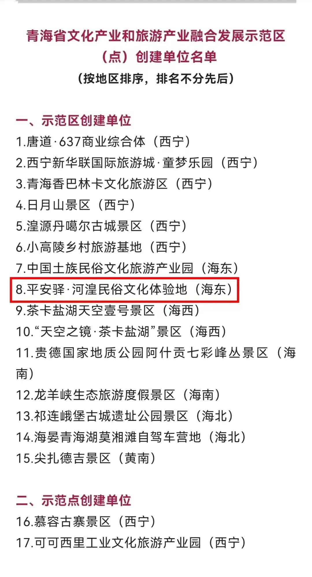 近日,青海省文化和旅游厅公布了第一批青海省文化和旅游产业融合发展示范区(点)创建单位名单,正平股份平安驛?河湟民俗文化体验地入选示范区创建单位。