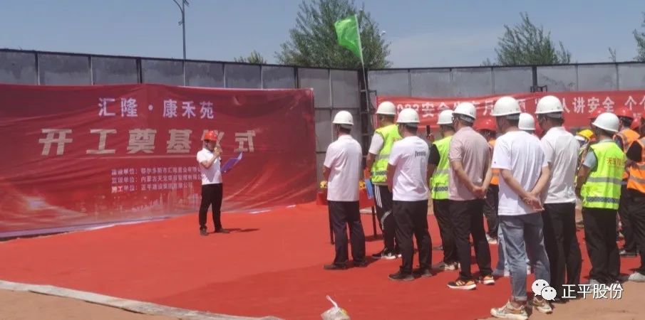 近日,由正平股份全资子公司正平建设集团有限公司承建的内蒙古鄂尔多斯市汇隆·康禾苑项目举行了开工仪式,业主单位、施工单位和监理单位代表等参加了开工仪式。