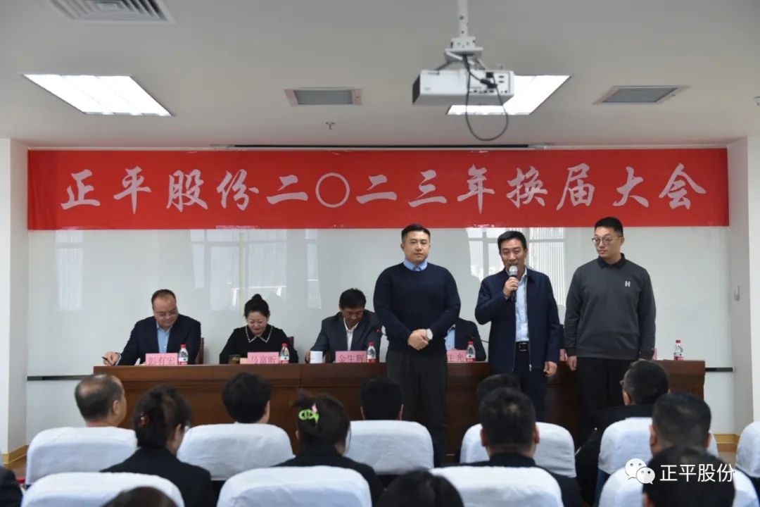 正平集团董事局副主席金生辉主持会议,他对正平股份上一届董事会、监事会、高管团队取得的工作成绩给予肯定,代表公司对上届董监高成员为正平事业付出心血和努力表示诚挚的感谢和最崇高的敬意。并对未来发展提出要求:希望新一届的董监高团队在接下来的履职中,要加强学习,要接受监督、要加强团结、要注重风险防范、要开拓进取、要做好表率。未来三年,将是公司生存与发展的关键之年,只有全力加大转型力度,持续提升执行力,有效预防和管控各种风险,才能为公司未来的生存和发展打下坚实基础。希望新一届管理团队,要坚定战略定力,促进传统业务和转型的深度协同融合,构筑行业中的差异化竞争力,提升战略转型和发展的韧性。同时,要进一步完善公司治理,坚持合规运营,以最佳成绩,来回报各位股东的信任、社会各界的支持和正平人的期待。