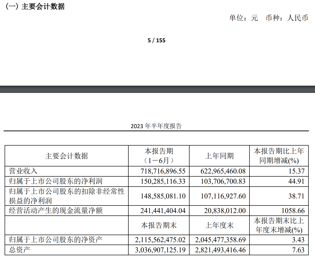 报告期内,好太太实现营业收入7.19亿元,同比上升15.37%,实现归属于上市公司股东的净利润1.5亿元,同比上升44.91%。