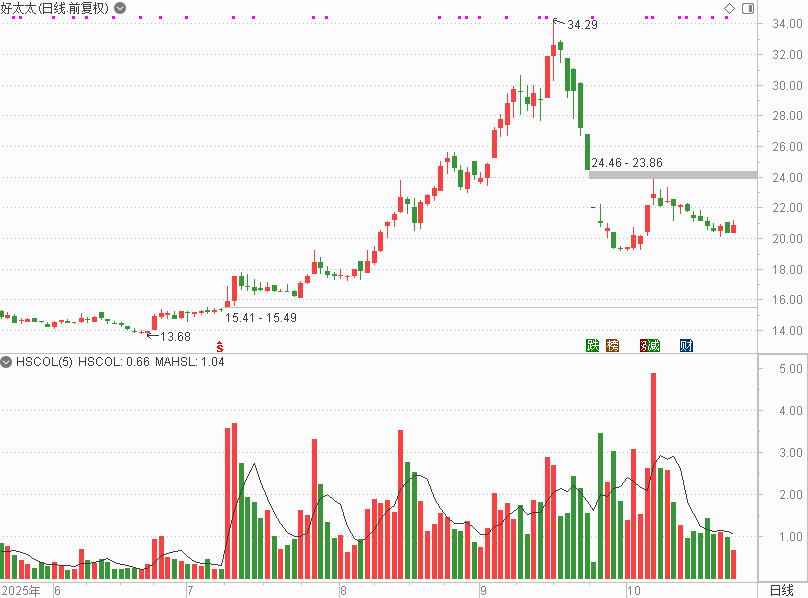 复盘来看,第三季度好太太的股价呈现“过山车”走势:7月份公司股价最低为14.51元,9月16日最高涨至34.29元,随后快速回落,9月30日最低跌至19.13元。截至2025年10月30日,好太太收盘价为20.34元,市值为81.85亿元。