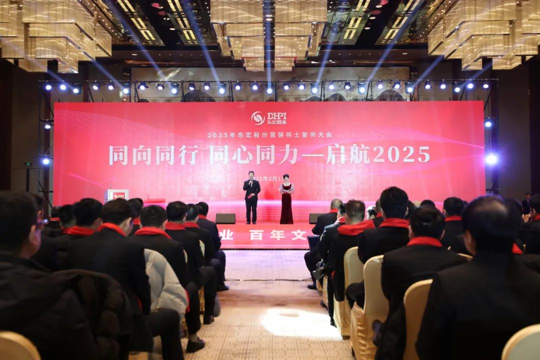 2025年2月11日,东宏股份“同向同行、同心同力——启航2025营销誓师大会”在曲阜香格里拉酒店盛大举行。公司董事长倪立营,东宏集团党委书记、董事长、东宏股份总裁倪奉尧,经营管理层,全体营销人员以及退休员工代表、职能部门副部级以上管理人员共计500余人共襄盛举。