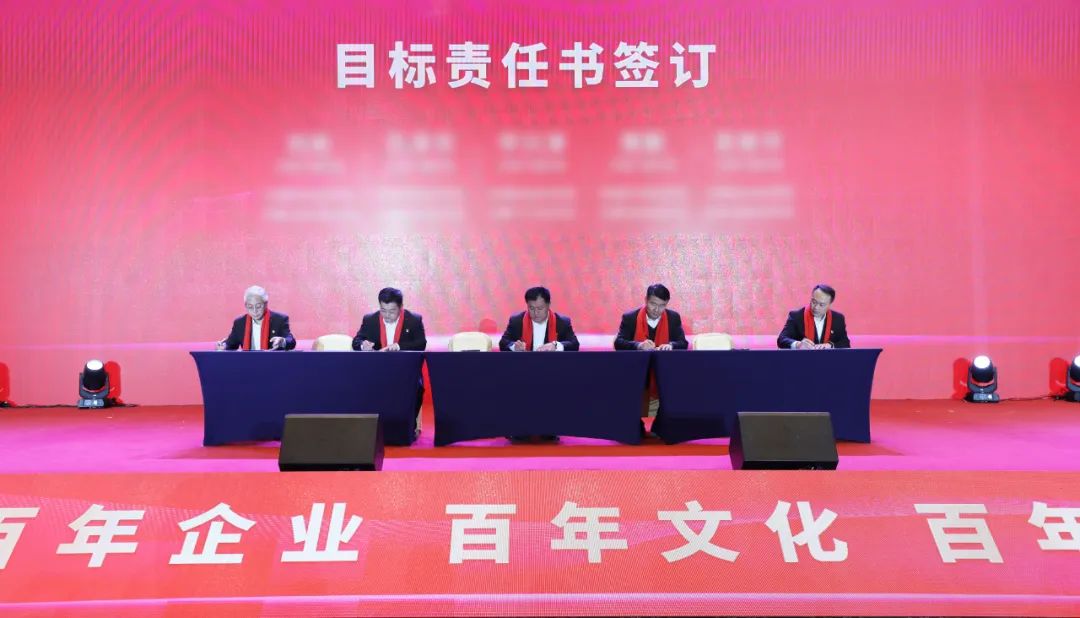在誓师大会的重要环节中,经营管理层签署军令状,营销序列董监高代表、各核心市场及市场总经理代表依次签订目标责任书。