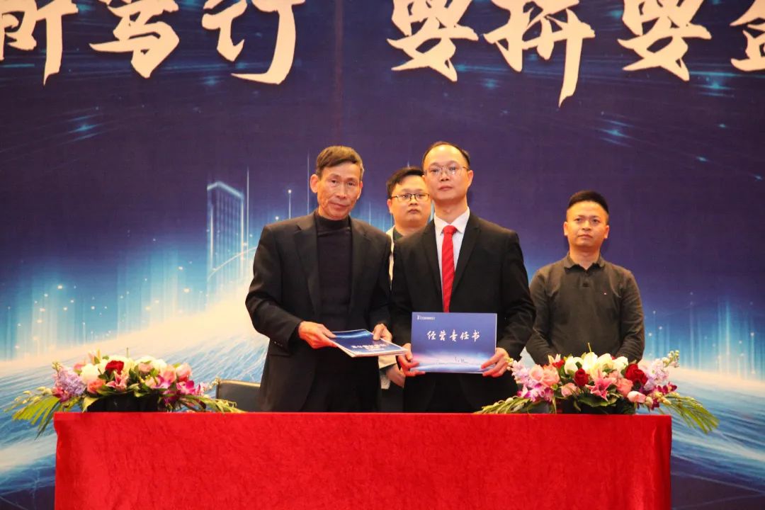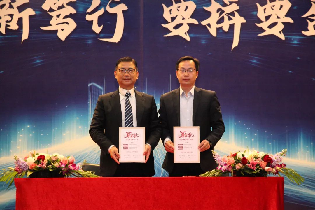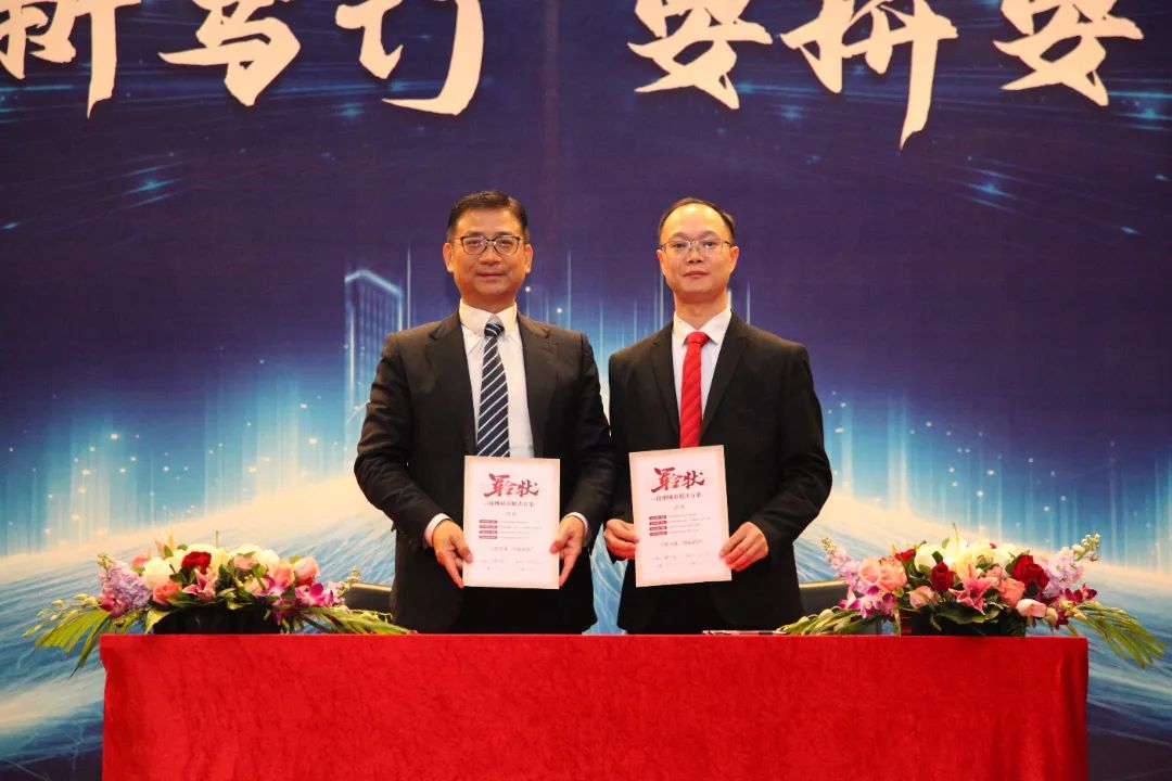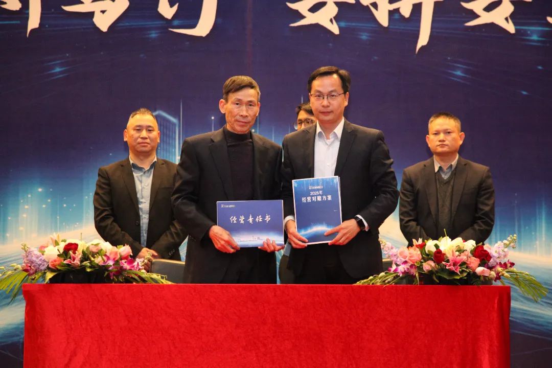 随后,各产业基地负责人与胡德兆董事长签订各属地城市解决方案军令状,立状为证,使命必达。各控股公司总经理带领经营团队与胡明聪总裁签订2025年经营目标及机制,坚持想到、说到、写到、做到,誓必达标。