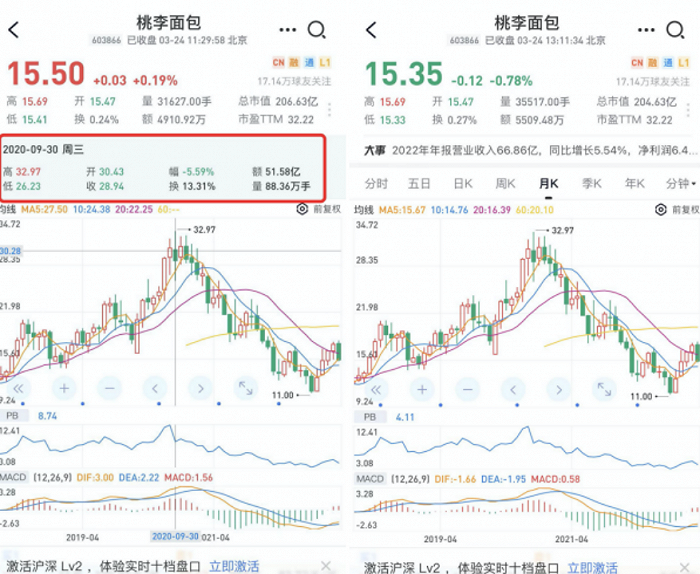 截至发稿,桃李面包报收15.35元/股。