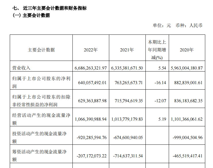 3月22日,桃李面包股份有限公司(后称“桃李面包”)发布了2022年的年度报告。年报数据显示,公司年度营业收入为66.86亿元,同比增长5.54%;归属于上市公司股东的净利润为6.4亿元,同比减少16.14%。