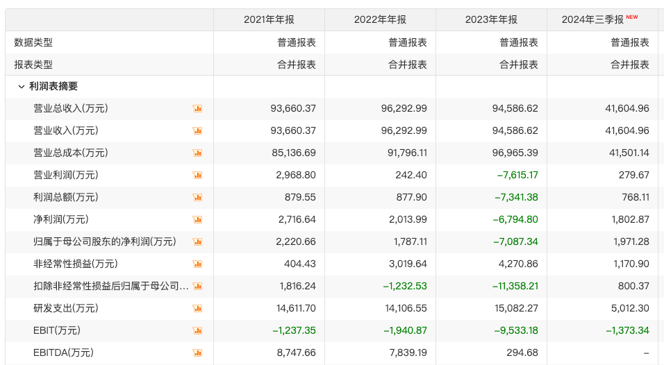近年来,ST智知业绩不佳。2021年至2023年,公司营收分别为9.37亿元、9.63亿元、9.46亿元,净利润则分别为2717万元、2014万元以及-6795万元。