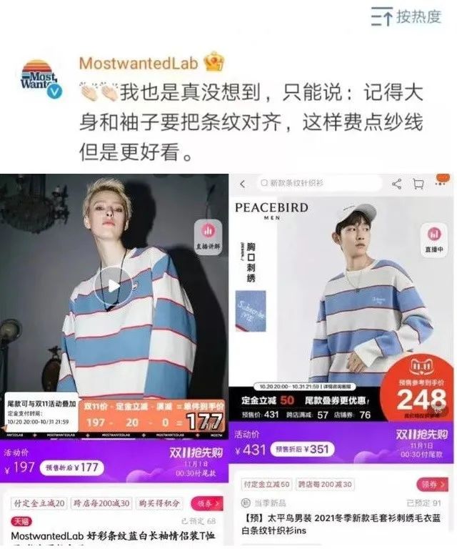 当前正值“双十一”,服装电商“厮杀正酣”,太平鸟被爆设计抄袭,大大拉低品牌形象。近日,国内一家小众原创品牌发文控诉太平鸟完全照抄其旗下产品,此事在微博上一度成为热门话题。事实上,太平鸟抄袭事件远不止于此,经网友深挖,其多件服饰与其他品牌设计高度雷同。