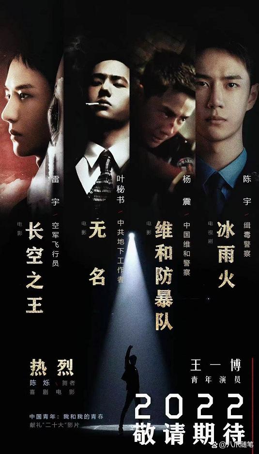 青年演员王一博虽然出道多年,可在电影圈却是实打实的新人一枚,不过资历新并不影响王一博高产。截至目前,除了《中国青年:我和我的青春》之外,今年已知王一博的待播电影就有四部。分别为《长空之王》、《维和防暴队》、《无名》,以及刚刚杀青的《热烈》。当然,还有让人等得望眼欲穿的电视剧《冰雨火》。王一博用四部不同题材的电影,通过四段不同的人生经历,展现了四种不同的人生态度。正因为饰演角色跨度大,王一博也得到了来自业内专业人士,以及观众的认可与肯定。(原创不易,谢绝搬运!如遇特需,私聊授权——八爪随笔)