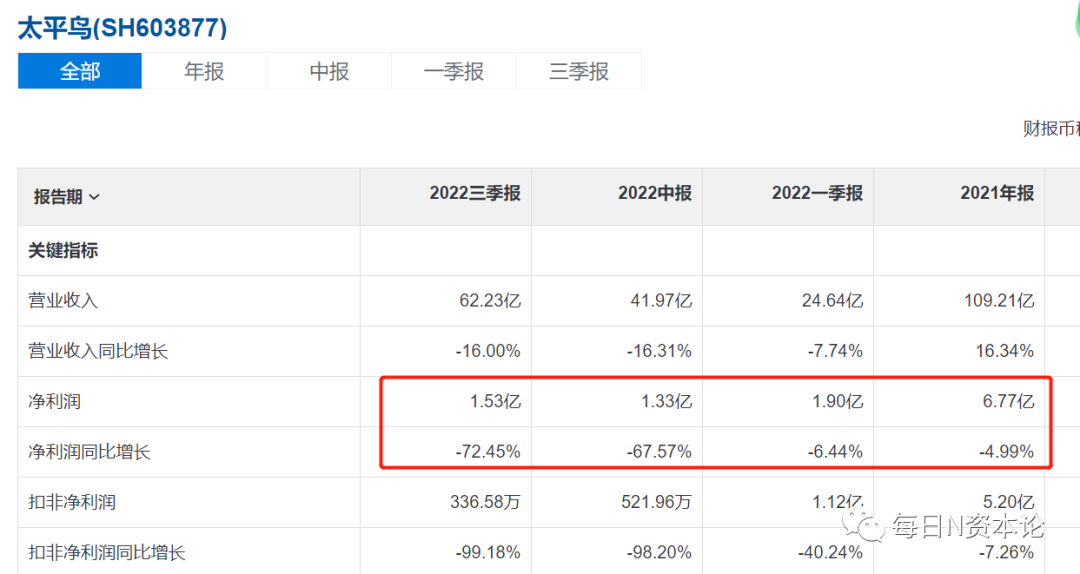 今年1月29日,太平鸟发布2022年财报预告显示,预计净利润1.95亿元左右,与上年同期相比减少4.82亿元,同比减少71%左右;扣非归母净利润-0.14亿元左右,与上年同期相比减少5.34亿元,同比减少103%左右。这是其2017年上市之后,6年来的首次扣非净利润亏损。