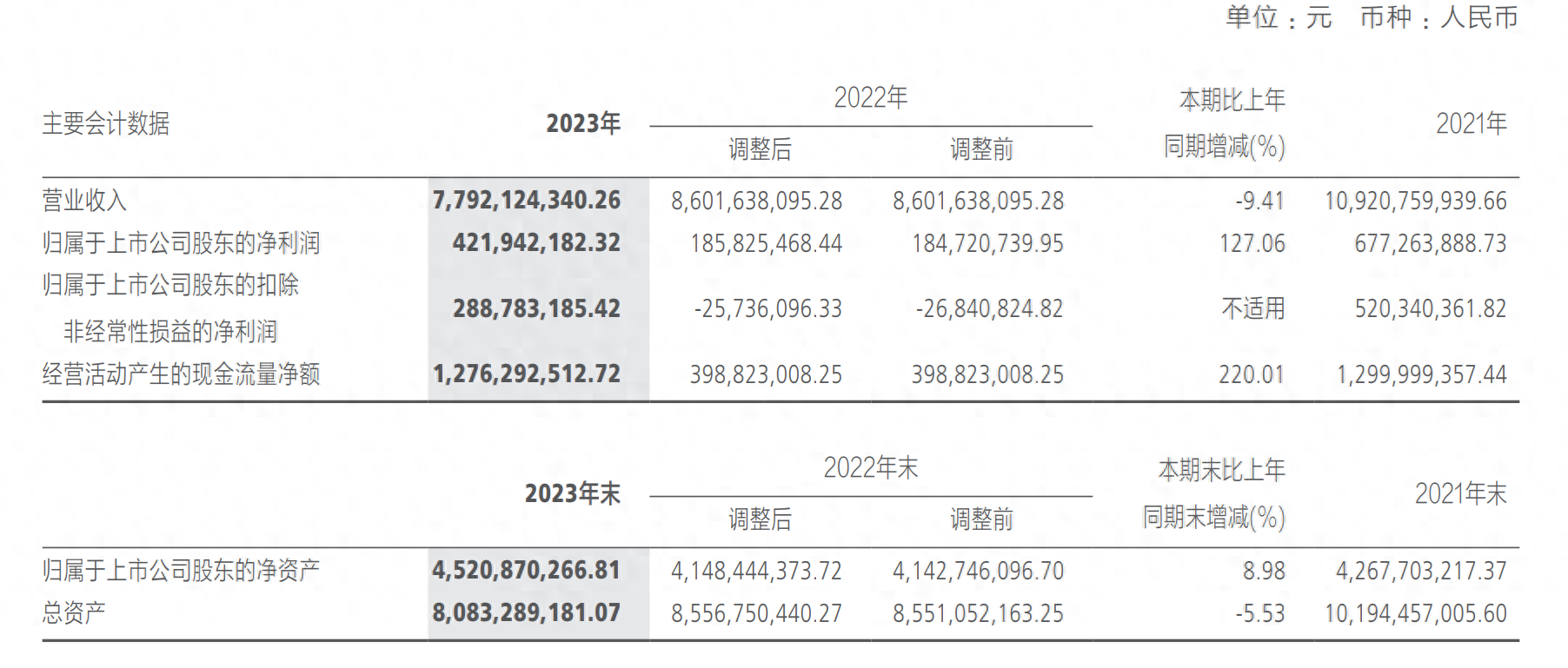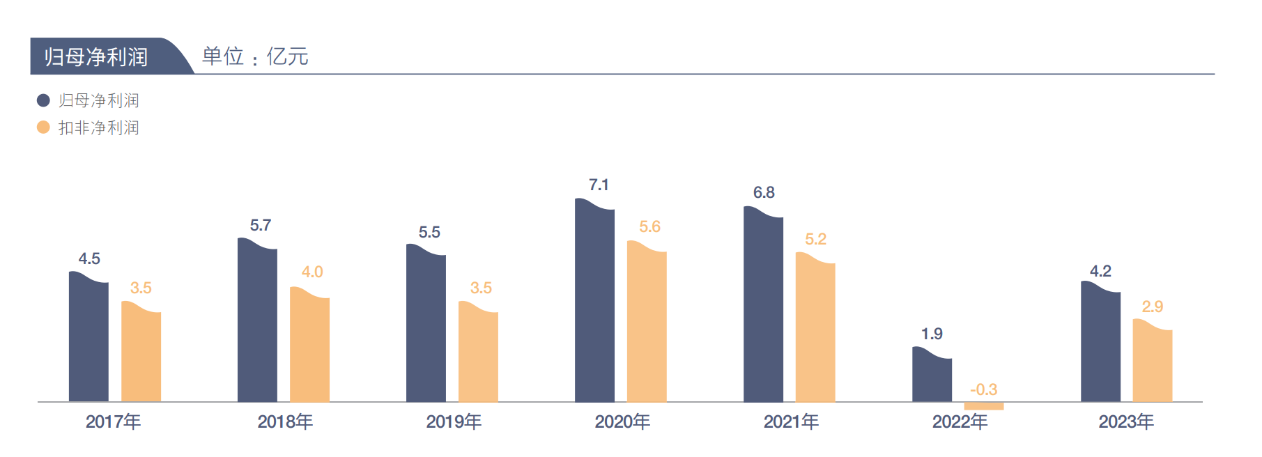2023年,太平鸟实现营业收入77.9亿元,同比下降9.4%;实现归母净利润4.2亿元,同比增长127.1%;实现扣非净利润2.9亿元,恢复增长。