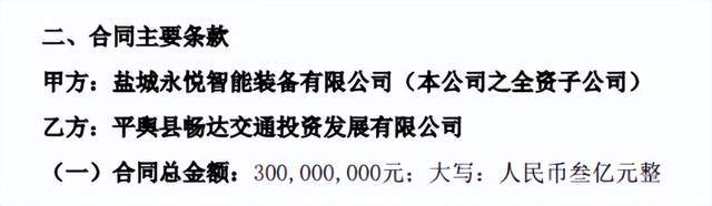 2023年8月28日,永悦科技公告,全资子公司盐城永悦与平舆县畅达交通投资发展有限公司签订销售合同,合同标的为5000台无人机,合同总金额3亿元。