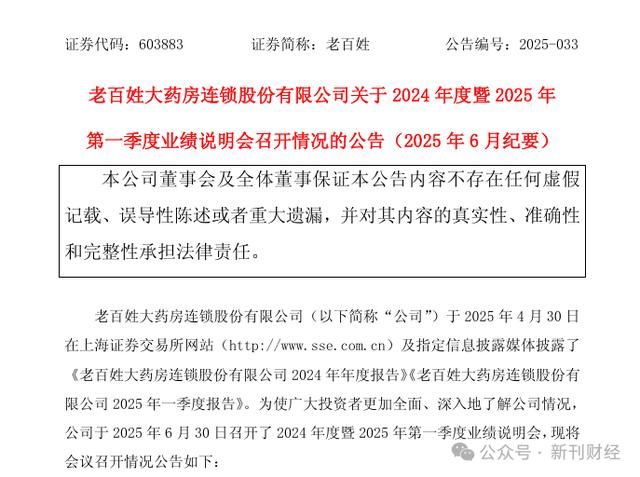 曾凭借平价药在医药零售界声名鹊起的老百姓大药房(603883.SH),近期颇受市场关注。7月1日晚,老百姓对2024年度暨2025年第一季度业绩说明会内容进行了系统梳理与总结,并针对投资者关切问题及公司回应予以说明。