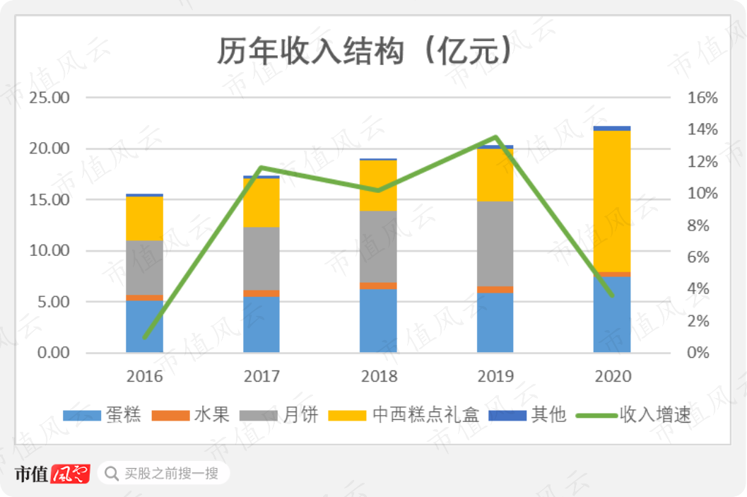 (注:2020年,公司将月饼收入合并计入中西糕点礼盒)