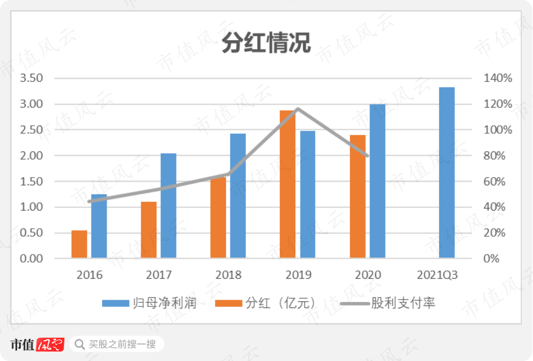 公司在执行过程中保证了历年股利支付率在40%以上,2019年股利支付率甚至达到了116%。