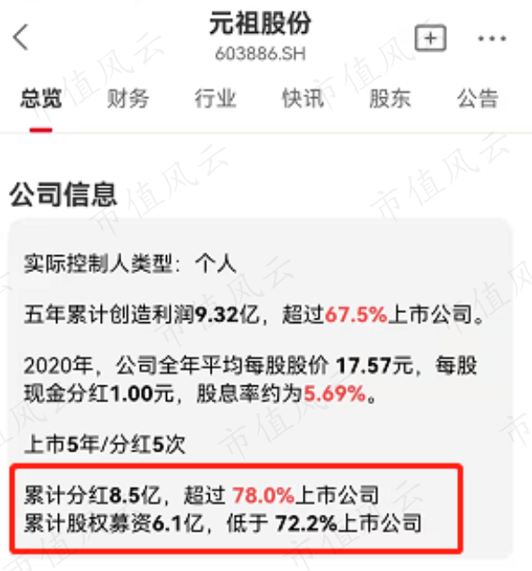 另一个风云君常看重的指标分红募资比,体现出公司累计分红超过了累计募资,在资本市场还没有镰刀霍霍向韭菜。
