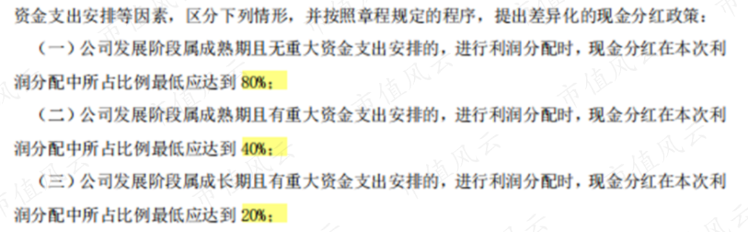 公司上市以来的分红政策和执行情况,算得上厚道。公司章程制定了非常良心的分红政策:若公司发展阶段处于成熟期且计划无重大支出时,股利支付率不低于80%;若计划有重大支出时,股利支付率不低于40%。