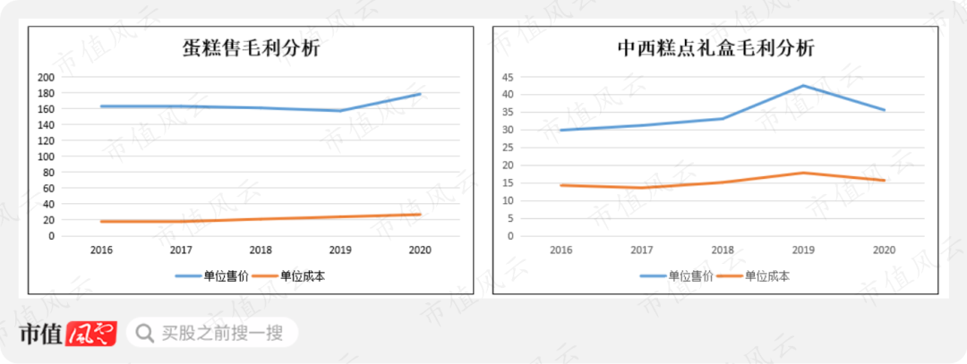 售价上,2020年公司蛋糕销售均价上升,中西糕点礼盒(含月饼)销售均价下降。由于高毛利蛋糕销售占比增加,导致当年公司整体毛利率上升。