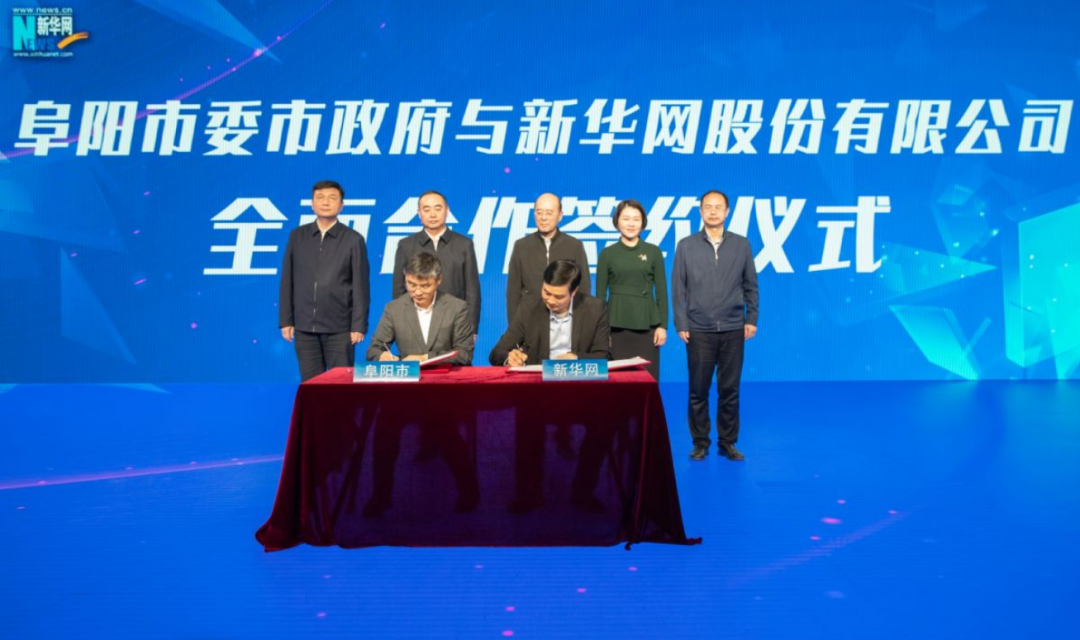3月13日下午,阜阳市与新华网股份有限公司在北京签署全面合作协议。新华社副社长、党组成员刘思扬出席。市委书记孙正东,新华网党委书记、副董事长徐姗娜致辞。市委常委、宣传部长白晓云与新华网党委常委、副总裁申江婴代表双方签约。新华社办公厅副主任王丰保,市委常委、常务副市长胡明文参加。