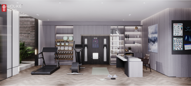 以运动健身为主,书房功能为辅“人鱼线”“A4腰”“锁骨放硬币”“反手摸肚脐”等新词或挑战不断涌现,拥有令人羡慕的身材,崇尚健康低卡的生活方式,影响着越来越多青年群体,引起了全民健身的浪潮。对于健身达人来说,运动的场地是关键,好莱客在深入了解健身项目和经过一系列的健身需求分析,为运动健身空间推出日间、夜间两种空间方案,日间方案是基于书房为载体的多功能房,承载运动健身和阅读休息的多功能空间;夜间方案则更侧重健身的目的,围绕健身运动属性进行软硬装及灯光设计。运动健身主题空间,以多功能书房为载体,新增运动健身功能,满足家庭类运动健身人群的居家健身需求,打造潮流运动健身主题多功能房。