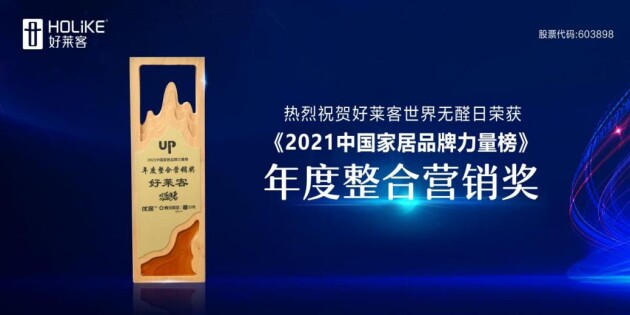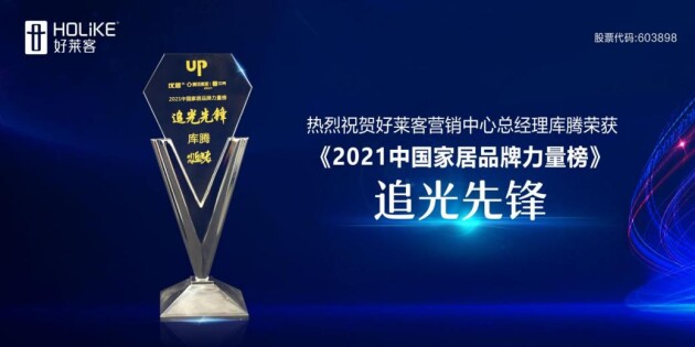 2021年11月17日,以“up数智助力全域增长”为主题的2022年(第二届)家居产业数字化峰会趋势发布直播圆满落幕,会上发布了“时代追光者”2021年度家居品牌力量榜。好莱客在品牌贡献力、影响力、创新力、环保力、技术力等多个领域实力出圈,强势摘下12项大奖,董事长沈汉标荣获“追光领袖”大奖,受到业界结构、媒体的高度认可。