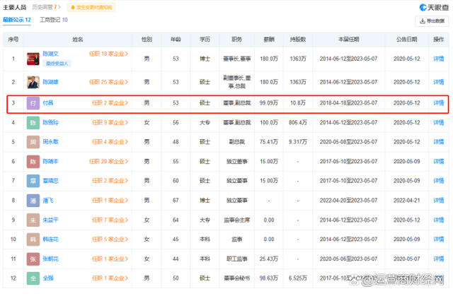 公开资料显示,付昌1970年1月出生,如今53岁,是工商管理硕士(EMBA),有关他的第一学历并未公开,毕业时间、毕业院校等信息更是无从得知。
