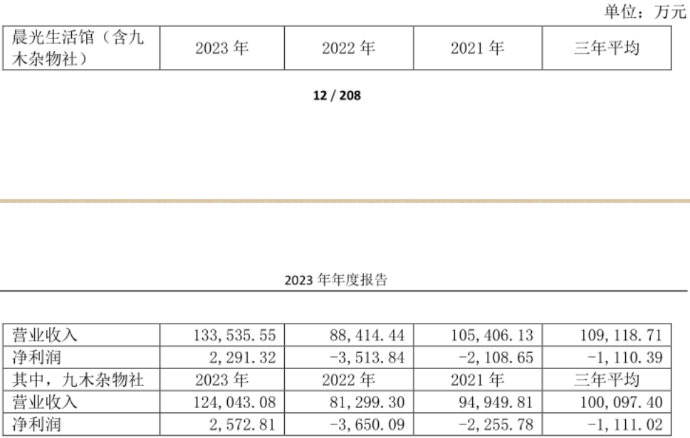 然而,晨光九牧杂物社的盈利能力也并不乐观,2023年之前一直处于亏损状态。2023年,九木杂物社实现营业收入12.40亿元,同比增长52%,实现净利润2572.81万元,自成立以来实现首个年度盈利,但对公司总利润的贡献度还十分有限。