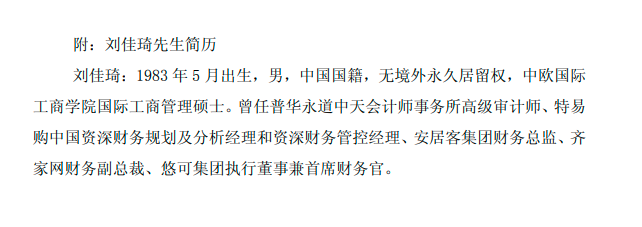 继任者刘佳琦,拥有中欧国际工商学院国际工商管理硕士学位,曾就职于普华永道中天会计师事务所,担任高级审计师,具备扎实的财务审计功底。