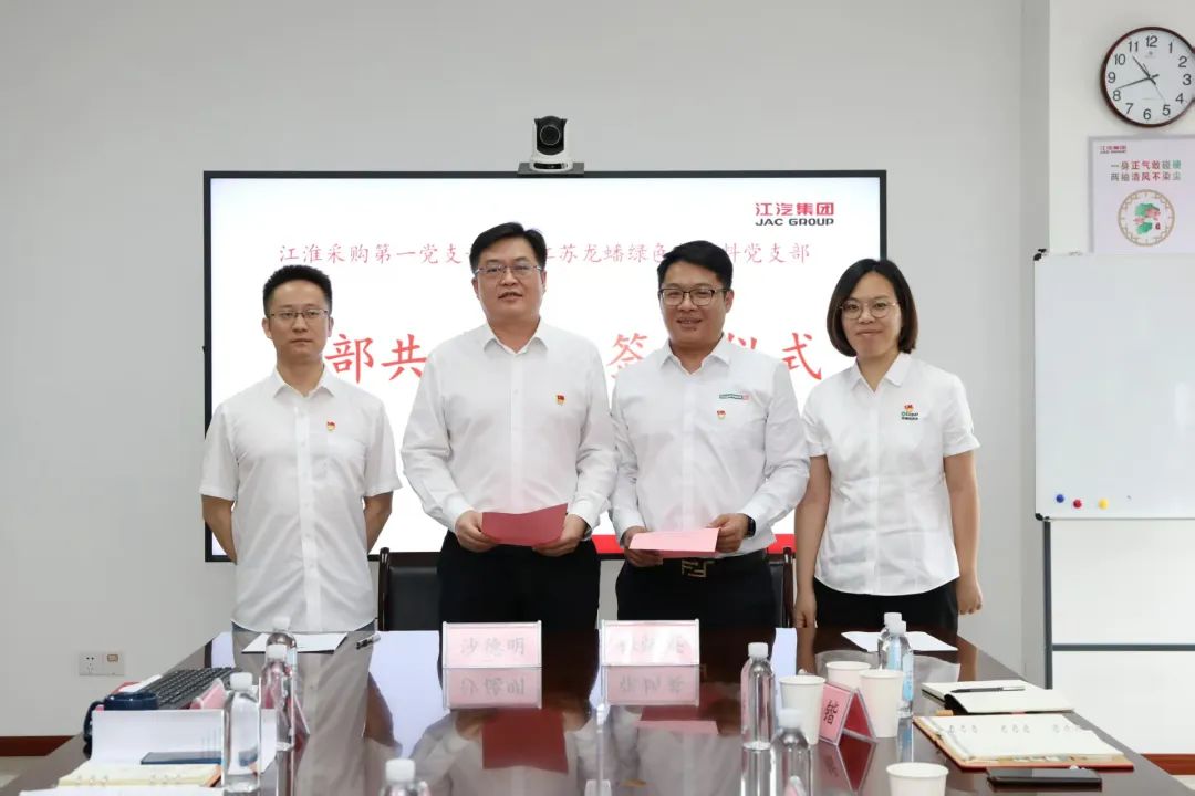 为深入学习贯彻党的二十大及二十届三中全会精神和习近平总书记考察安徽重要讲话精神,深入贯彻中央八项规定精神学习教育,坚持以习近平新时代中国特色社会主义思想为指导,充分发挥党建引领作用,加强推动基层党组织共学共建实践。5月23日,江苏龙蟠绿色新材料党支部一行前往合肥,与江淮采购中心采购第一党支部开展基层党组织共建活动,现场双方签订党支部共建合作协议,并向项目主要责任人授予战表。