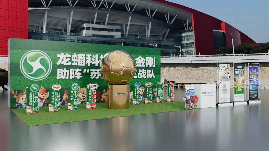 作为从江苏南京本土走出的科技创新企业,龙蟠科技与苏超的合作是创新文化与体育精神的一次激情碰撞。这种精神共鸣也在这次的展台设计中得到完美诠释。八大金刚对应十三支战队,科技力量与体育精神在此交融。我们希望通过金球这个象征物,让球迷感受到荣耀与梦想的可触可感,也希望创新基因与草根足球的蓬勃生命力相遇,能碰撞出比金球更加耀眼的火花。