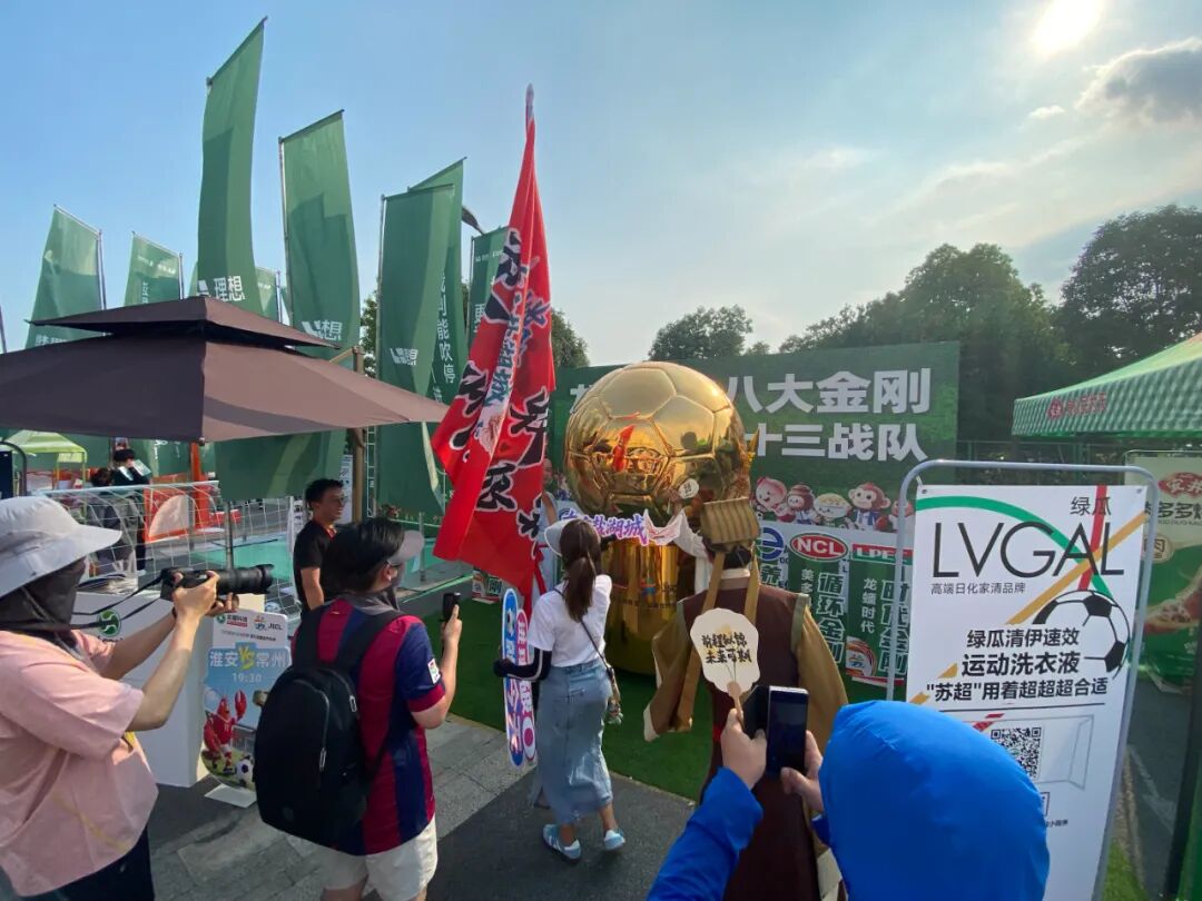 上周末的苏超赛场硝烟弥漫,南京与苏州的“江苏一哥”之争、淮安与常州的激烈碰撞,让球迷大呼过瘾。而赛场外,一个金光闪闪的巨型圆球成为赛场之外最抢镜的“显眼包”。