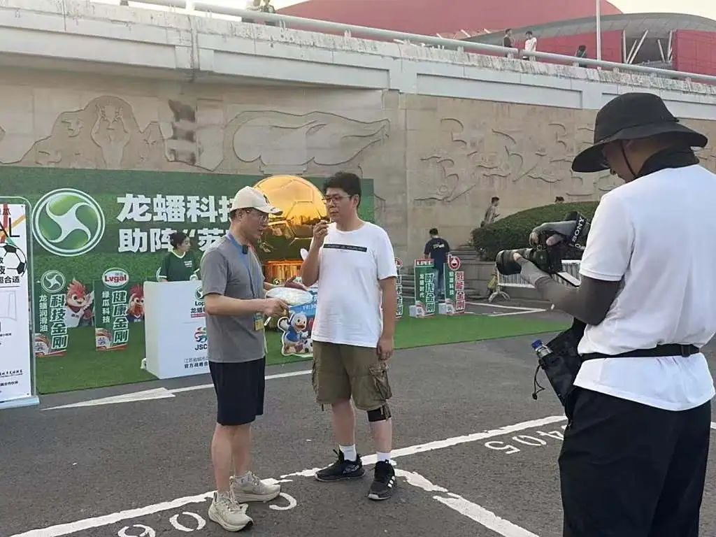 各大媒体更是不会错过这样的热点。“现场到处都有足球的元素,我后面就有一个大金球,我看到现场很多球迷在这里打卡。”大象视频的主持人对着镜头做开场解说,他的助手正绕着金球多角度拍摄。接下来,主持人以龙蟠科技展台为背景,对现场球迷进行了互动采访。在一片热闹的氛围中,龙蟠科技展台人气始终高居不下,短短半小时内就有十多组自媒体创作团队前来取景。