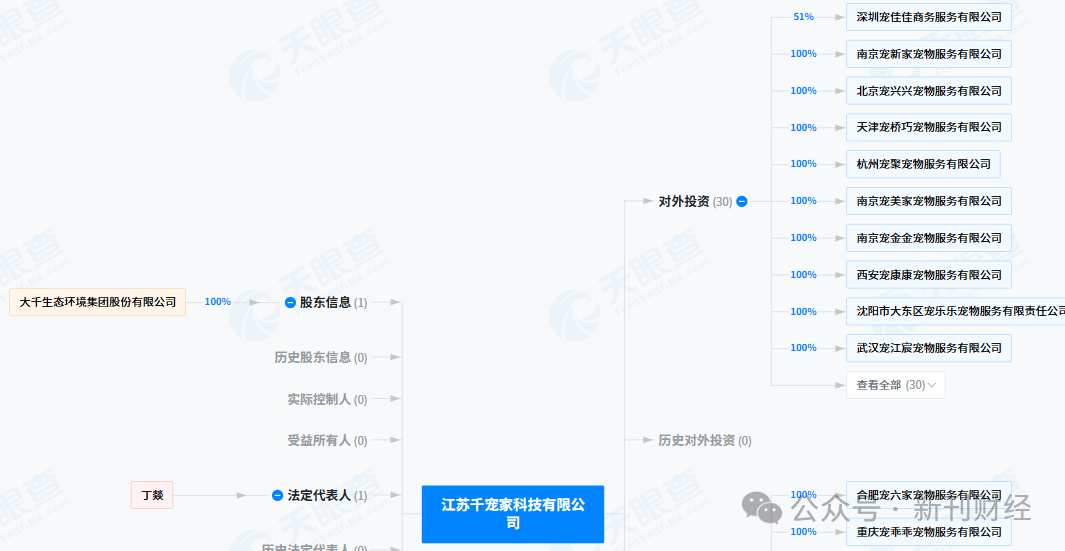 尽管大千生态矢口否认主营业务调整,但其一系列动作却难掩战略转向的野心。2025年3月11日突击成立的江苏千宠家科技有限公司,短短两个月内便疯狂扩张30家子公司,如此激进的布局速度,与其宣称的“业务稳定”自相矛盾。