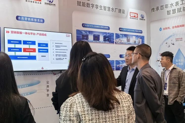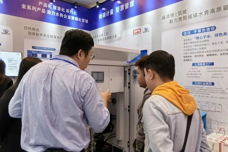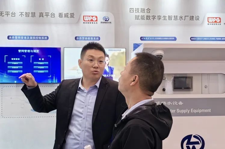 威派格贵州分公司总经理马超陪同接待,本次展区展示突出威派格在智慧水务、二次供水、智慧模块化水厂、水表智造等整体的解决方案能力,展区交流期间大家也对水务行业目前聚焦的重点问题:智慧水务建设路径、水表使用寿命及更换进行了深入的交流与探讨。
