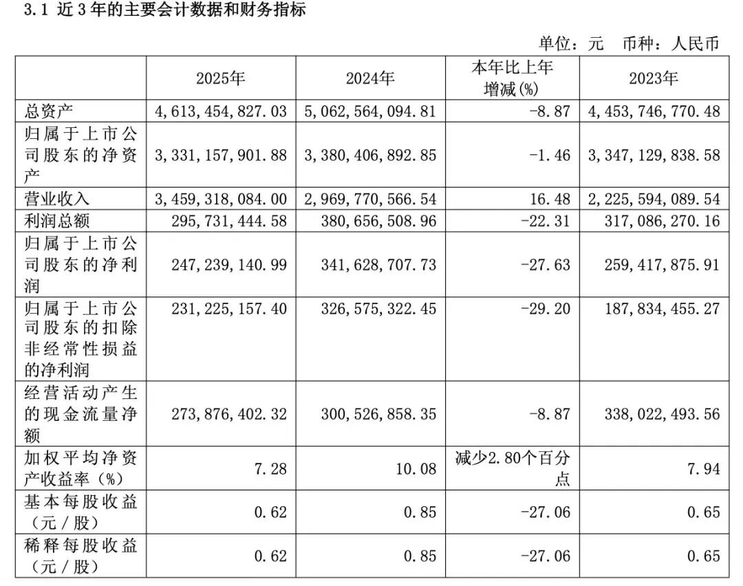 2026年3月31日晚,丸美生物(SH603983)发布了2025年年度业绩报告。这份“成绩单”呈现出鲜明的反差:公司实现营业收入34.59亿元,同比增长16.48%,但归母净利润仅为2.47亿元,同比大跌27.63%,陷入了典型的“增收不增利”困境。