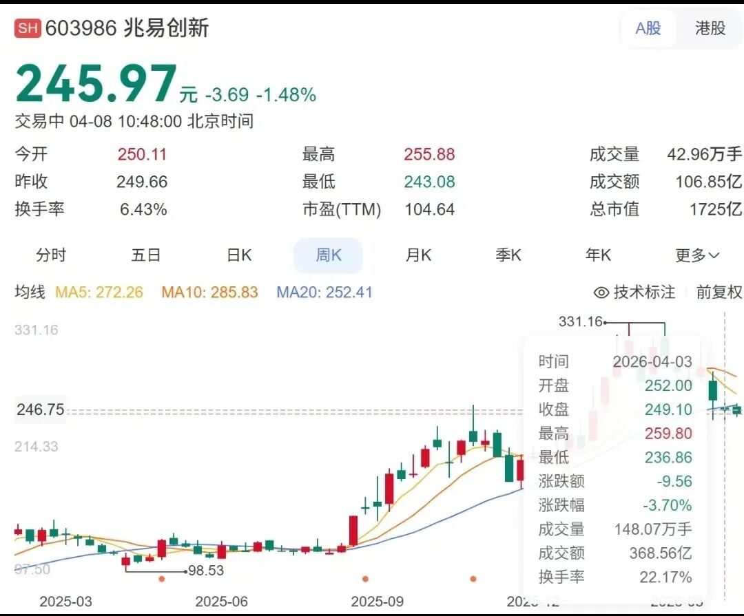 4月7日晚九点多钟,兆易创新(股票代码:603986)向上交所连续提交了两份文件。一份是2025年的年度报告,另一份是董事长朱一明的减持计划。