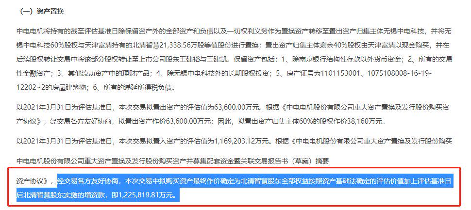 2021年9月24日晚间,中电电机发布多份公告,披露了方案的诸多细节,本次拟收购标的北清智慧交易作价高达122亿元。
