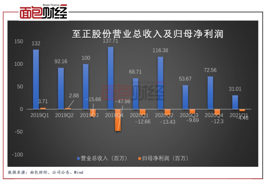 数据显示,公司的归母净利润亏损虽然有收窄迹象,但已连续7个季度出现亏损。2021年一季度公司归母净利润亏损446.47万,上年同期亏损为1266万。