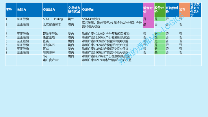 现金支付的交易对象主要是GP智路资本和ASMPT;股份支付的交易对象包括ASMPT和两支基金的出资人。