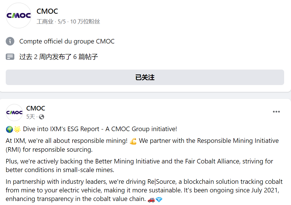 洛阳钼业官方X账号和脸书账号于去年9月启动,通过1年多时间的运营,已取得初步成效,获得了业内的广泛关注。依托国际化新媒体平台,洛阳钼业围绕公司重大新闻、海外各矿区运营亮点、ESG实践、员工个人成长和生活片段等,进行公开、透明的传播,进一步增进了海外受众对公司的了解,提升了国际化形象。