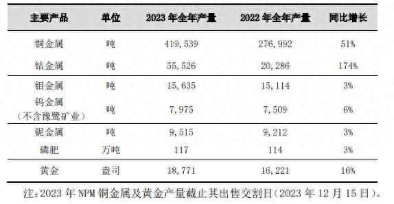 1月4日,距离年报发布仍有一段时间,洛阳钼业(603993.SH)率先公布了2023年度主要产品产量情况,铜、钴、钼、钨、铌、磷肥、黄金所有产品产量均实现同比上涨。
