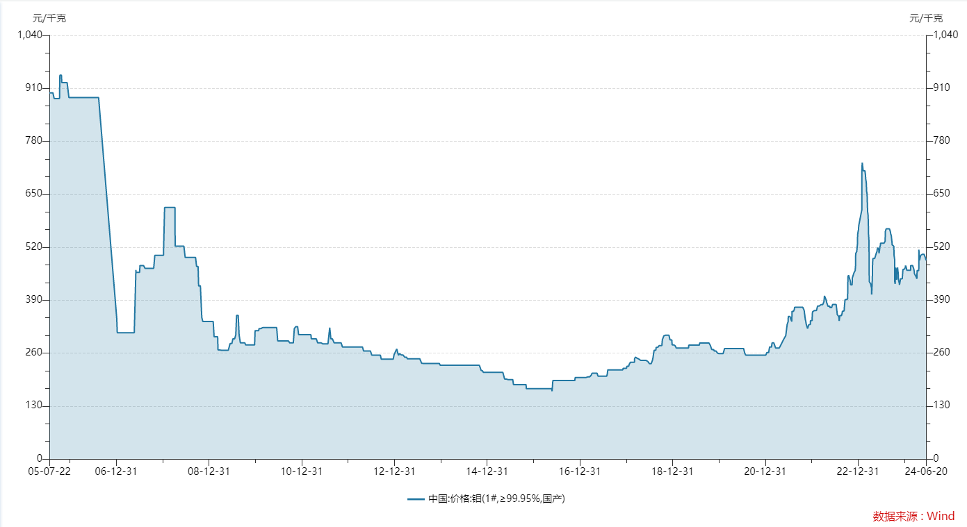 受2008年全球金融危机的影响,主要拉动钼需求增长的钢铁急剧减产,加之国内外新型钼矿山的陆续投产,导致钼行业产能过剩加剧,钼市场交易极为清淡,钼价一再下挫,直到2017年开始国内钢铁行业景气度反转向好,钼价才震荡回升数据显示,自新疆洛钼拿到采矿权后,2011年至2022年上半年国内钼价一直在低位运行。
