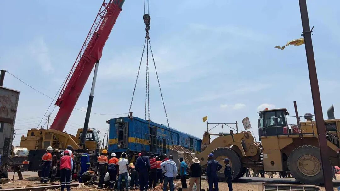 TFM救援团队出动大吨位起重机与大型装载机等重型设备,在公司消防队指引下,将出轨机车复位,清除路面卡车受阻道路。最终,经过连续6个小时的彻夜奋战与协同作业,相关路段化险为夷,恢复交通畅通。现场等待通行的车辆司机们与本地民众对TFM公司连声道谢,负责铁路运营的SNCC技术团队亦对TFM公司此次“雪中送炭”高度赞赏。