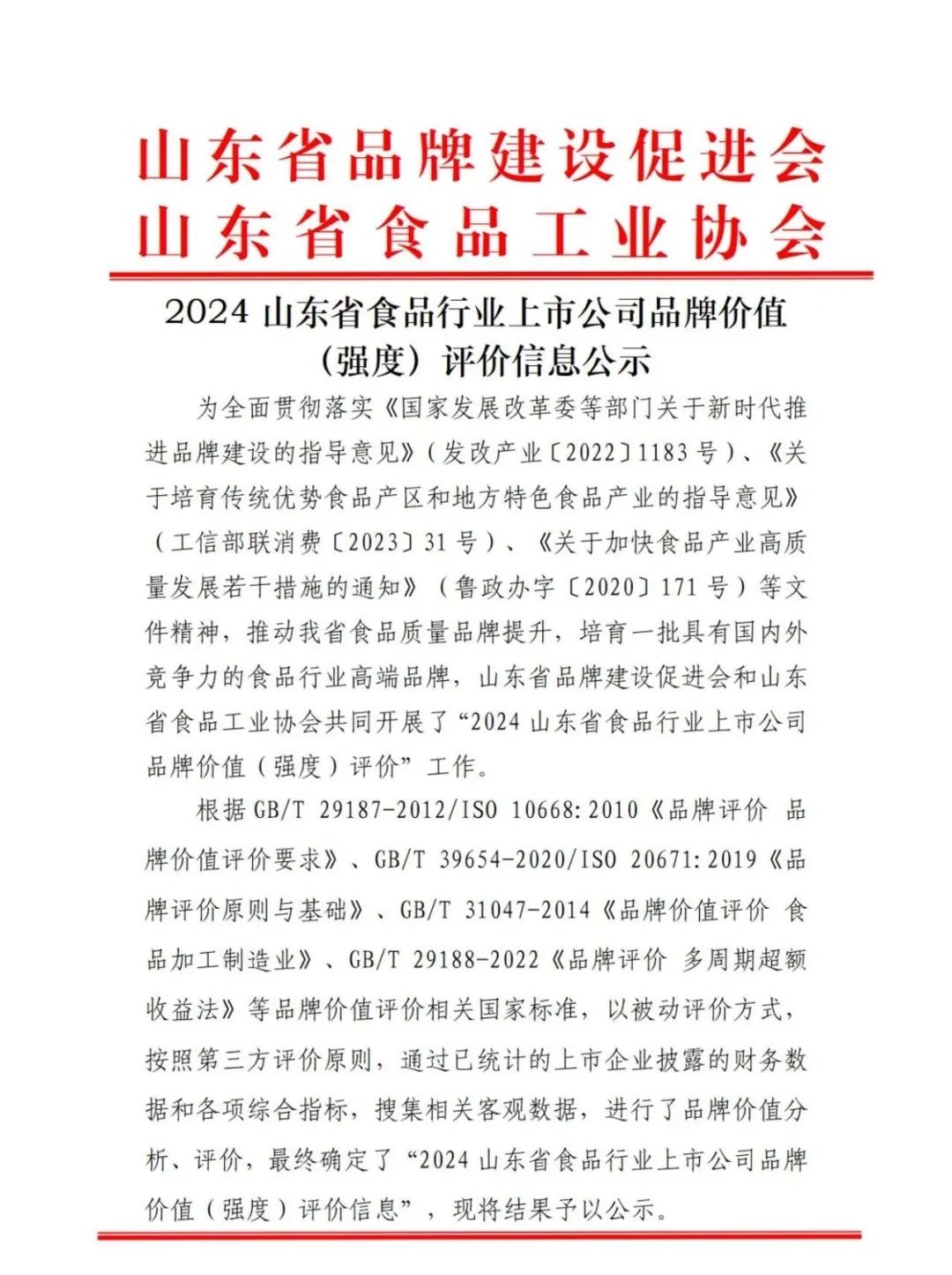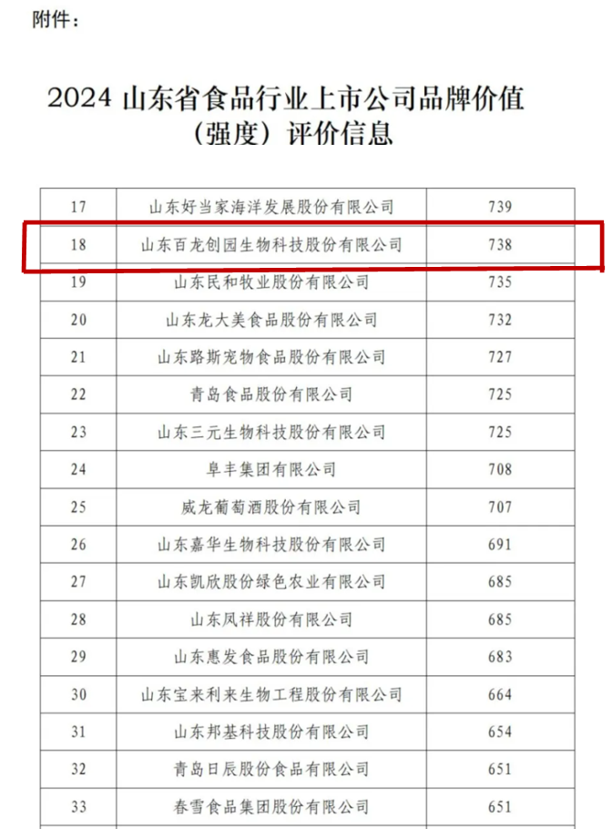 百龙创园入围2024山东省食品行业上市公司品牌价值榜单!本次评价,由山东省品牌建设促进会、山东省食品工业协会共同发起,主要目的是全面贯彻落实《国家发展改革委等部门关于新时代推进品牌建设的指导意见》(发改产业〔2022]1183号)、《关于培育传统优势食品产区和地方特色食品产业的指导意见》(工信部联消费[2023]31号)、《关于加快食品产业高质量发展若干措施的通知》(鲁政办字〔2020]171号)等文件精神,推动全省食品质量品牌提升,培育一批具有国内外竞争力的食品行业高端品牌。