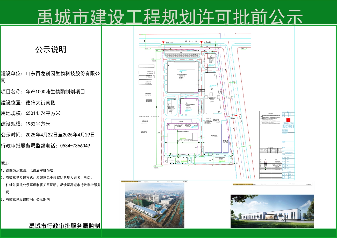 山东百龙创园生物科技股份有限公司年产1000吨生物酶制剂项目建设工程规划许可批前公示