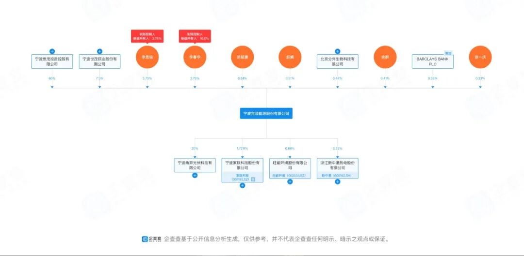 股权穿透显示,目前,李立峰、李象高家族成员通过世茂投资和世茂铜业,直接和间接共计持有世茂能源75.00%的股权,为公司实控制人及一致行动人。