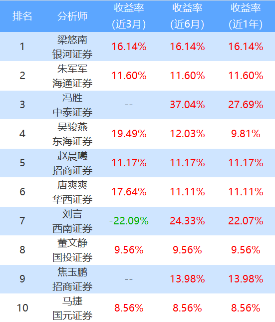 分析师评价(基础化工行业)行情类排行榜TOP 10