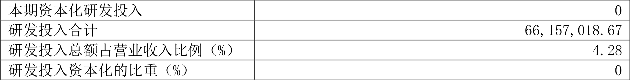 2023年全年,公司研发投入金额为6615.70万元,同比增长8.86%;研发投入占营业收入比例为4.28%,相比上年同期下降0.16个百分点。此外,公司全年研发投入资本化率为0。