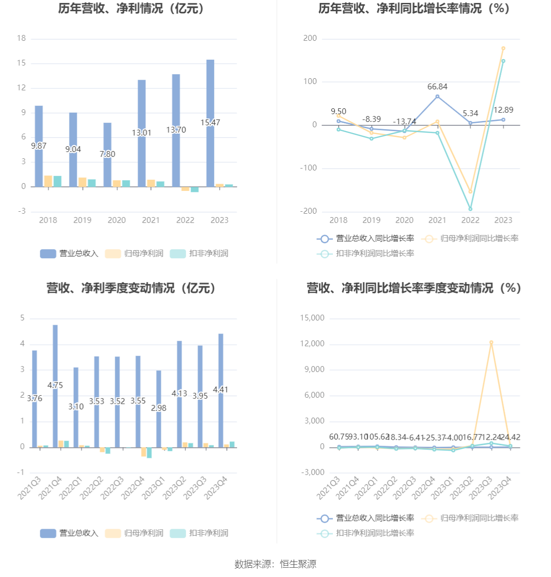 数据显示,2023年公司加权平均净资产收益率为3.30%,较上年同期增长7.49个百分点;公司2023年投入资本回报率为3.04%,较上年同期增长5.56个百分点。